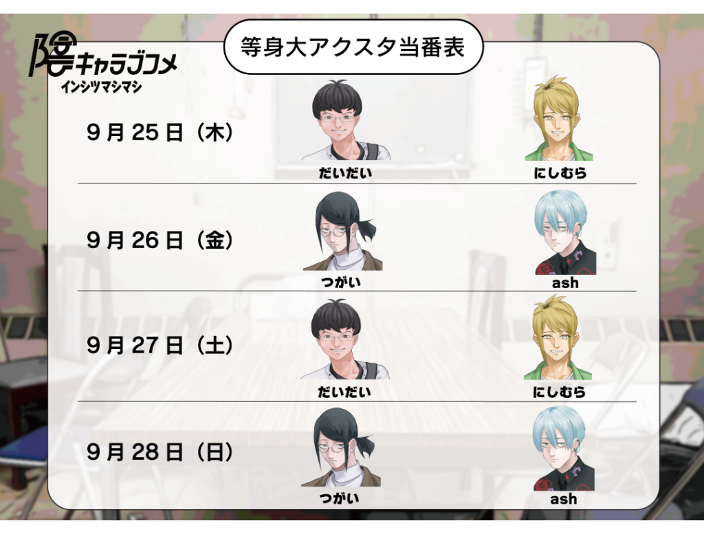 「陰キャラブコメ インシツマシマシ」の試遊台の横には、「陰キャラブコメ」ではおなじみのオタクたちが日替わりでやって来る!
