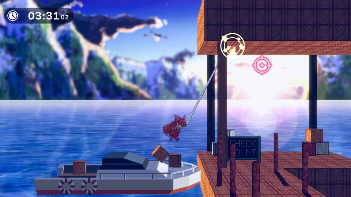 “SuperHookGirl Ultra Challenge!!” features Simple controls — but tough to master! Hook onto anything to discover shortcuts and advanced movement techniques!